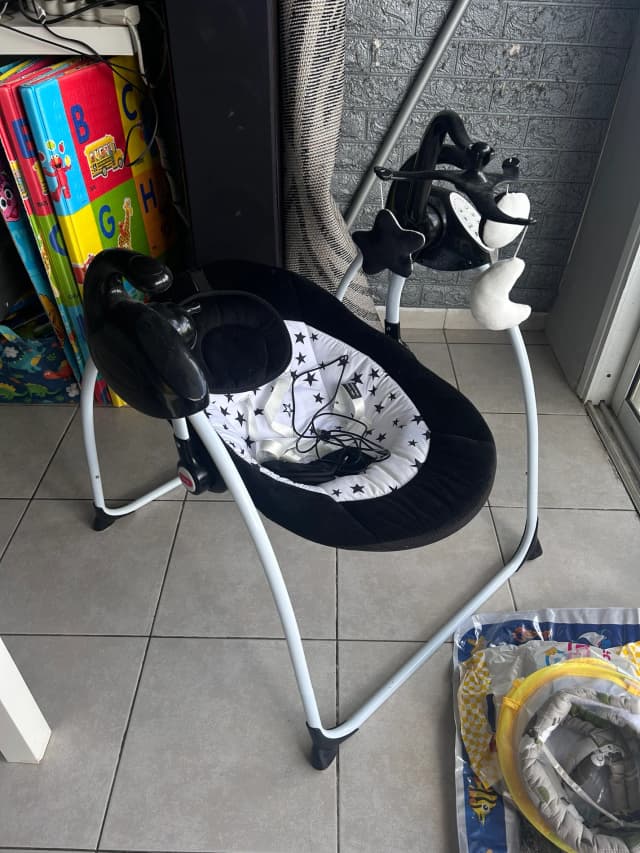 Новый , пользовались совсем немного, моему малышу не нравилось там лежать 🤣ну может чуть-чуть находился там ) коробки нету выкинули 🤦♀️