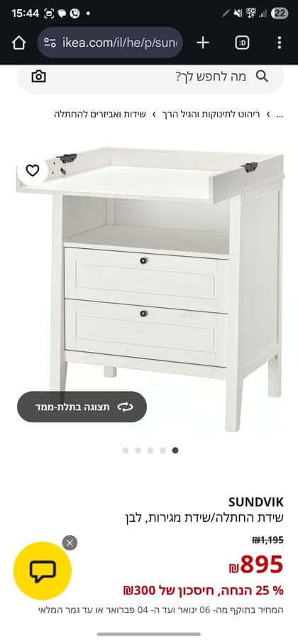 Новый пеленальный столик, состояние идеальное. 400 вместо 1200, икея. Афула.