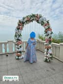 Очень красивое вечернее платье MAXRA GOVANA на женщину не высокого роста. Голубая наплечная накидка в комплекте. Видно на фото. Размер 48-50, M-L 850 шек.
