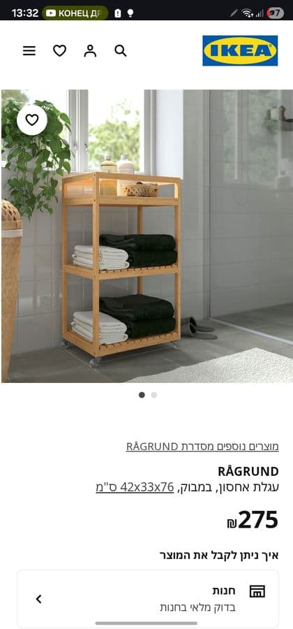 Новый удобный шкаф на колёсах для ванны, икея. Афула.