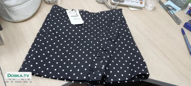 Шорты-юбка для девочки, новые с этикеткой, Размер 13-14 164 На черном фоне белые горошины
