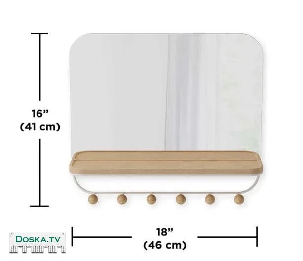 Зеркало, которое придаст вашему дому декоративный и современный вид. В комплекте с зеркалом идет деревянная полка, на которой можно разместить телефон, кошелек, ключи, а также небольшие цветочные горшки и шесть крючков для пальто и сумок. Благодаря функциональному хранению вы сможете легко и просто хранить свои вещи, чтобы не покидать дом. Современное сочетание дерева и металла делает эту полку декоративным решением для хранения, которое будет отлично смотреться в любом месте вашего дома или офиса. Выдерживает до 16 кг.